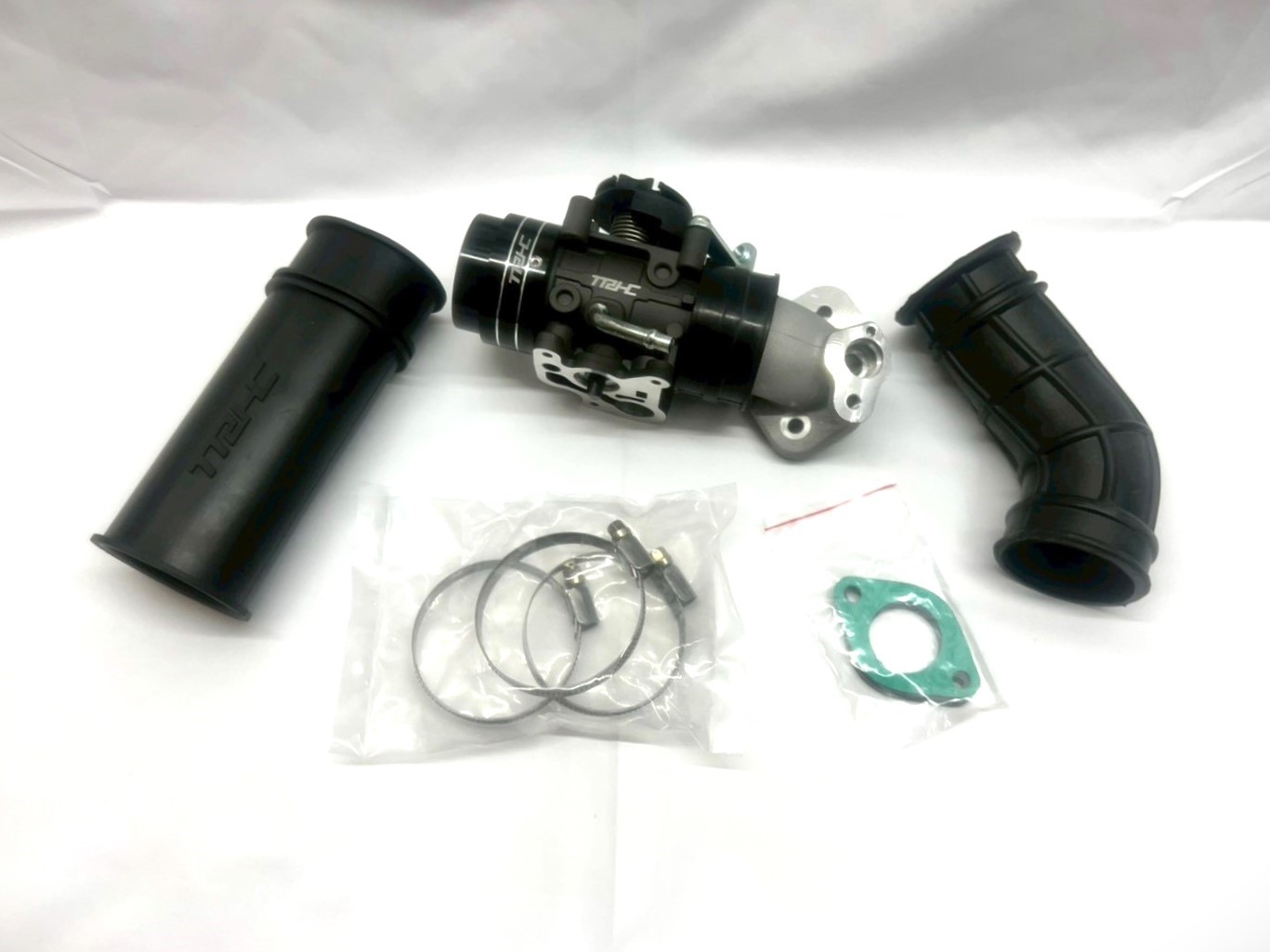 TRHC ビッグスロットルボディセットは、スロットルボディとエアクリダクトの間にファンネルを装着し、大口径のエアクリダクトを備えた設計。