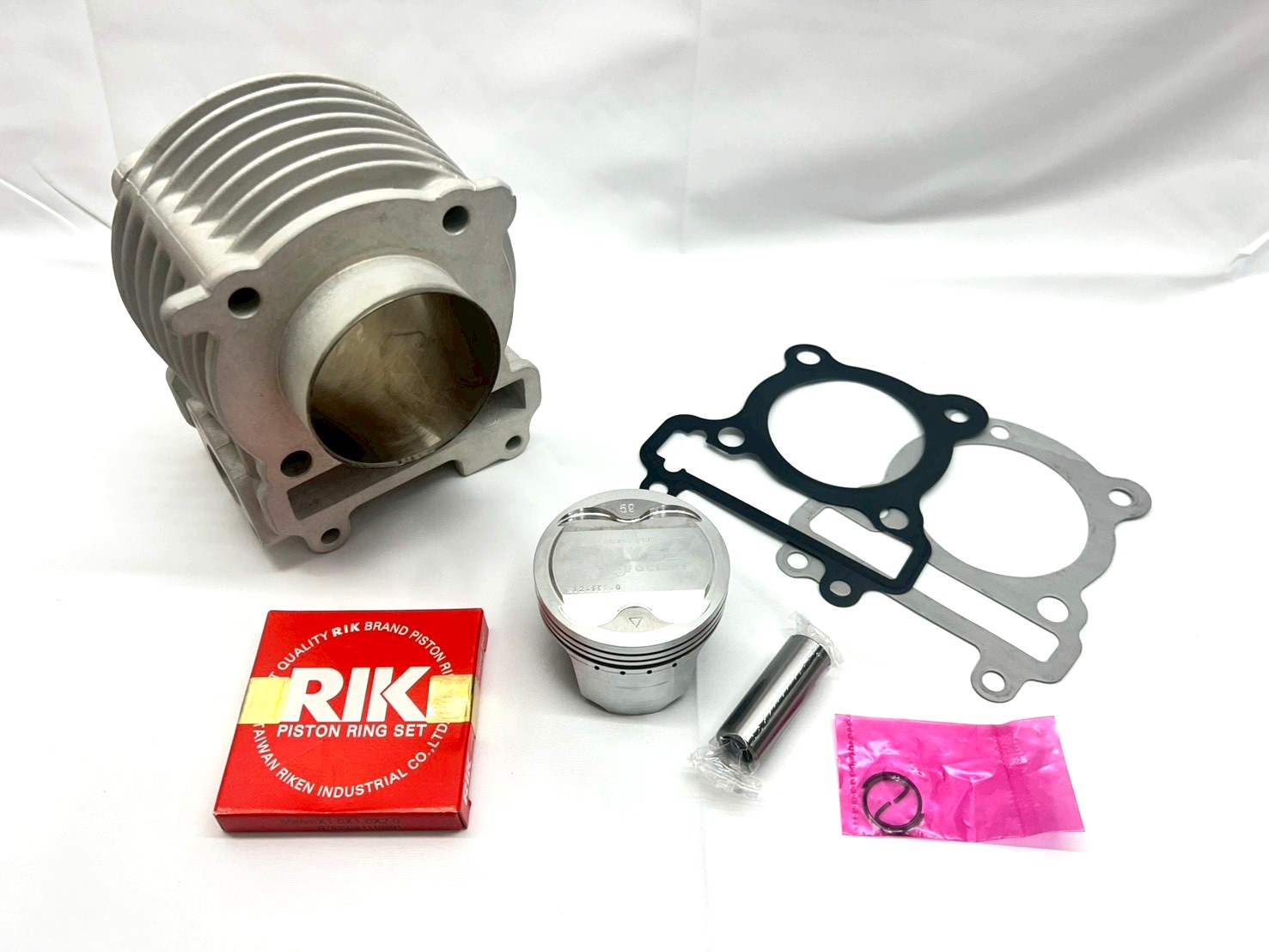 シリンダー、ピストン、ガスケット類、ピストンリング、サークリップまで付属。取り付けに必要な部品がすべて揃っています。